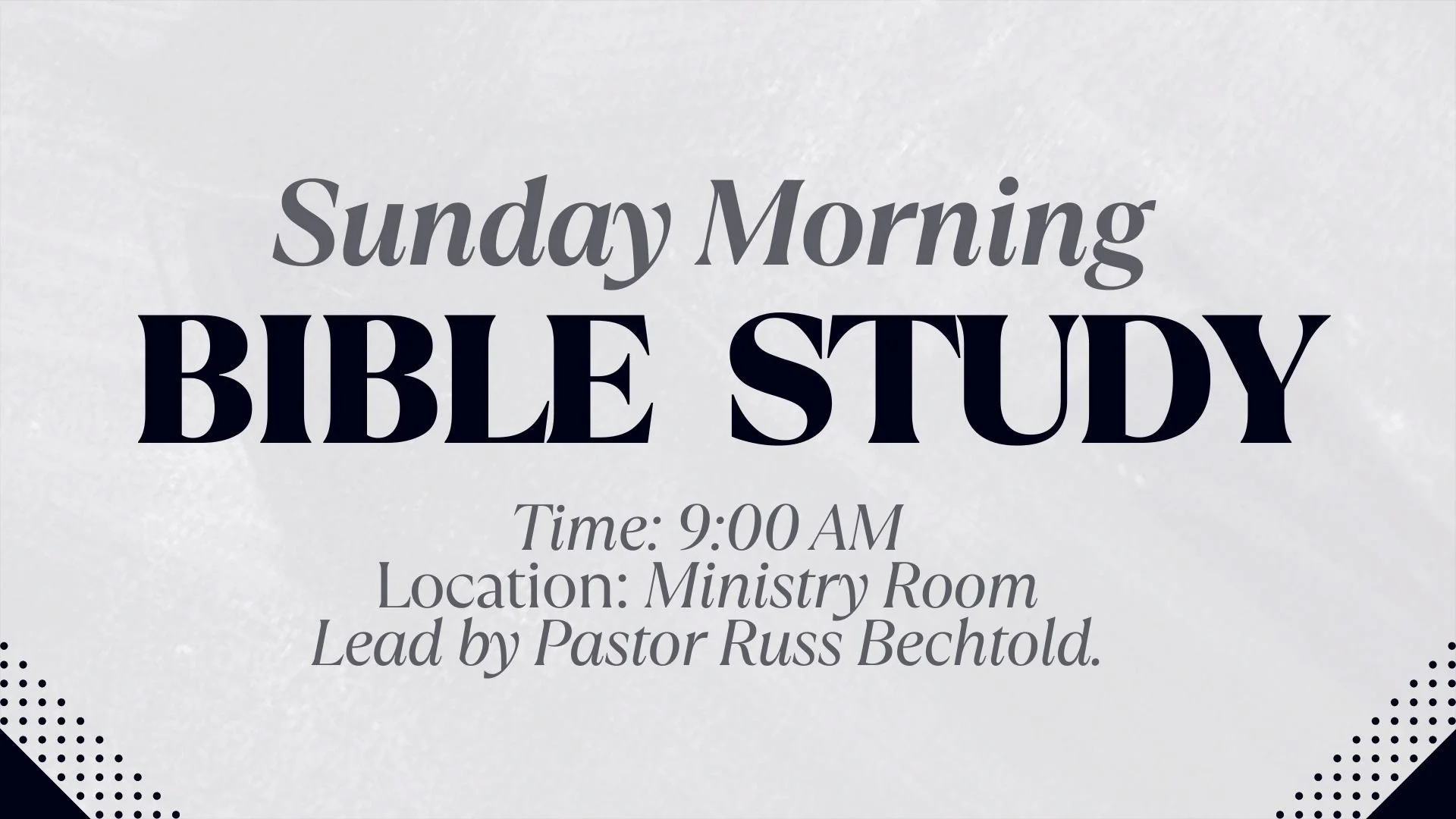 • Lead by Pastor Russ Bechtold.